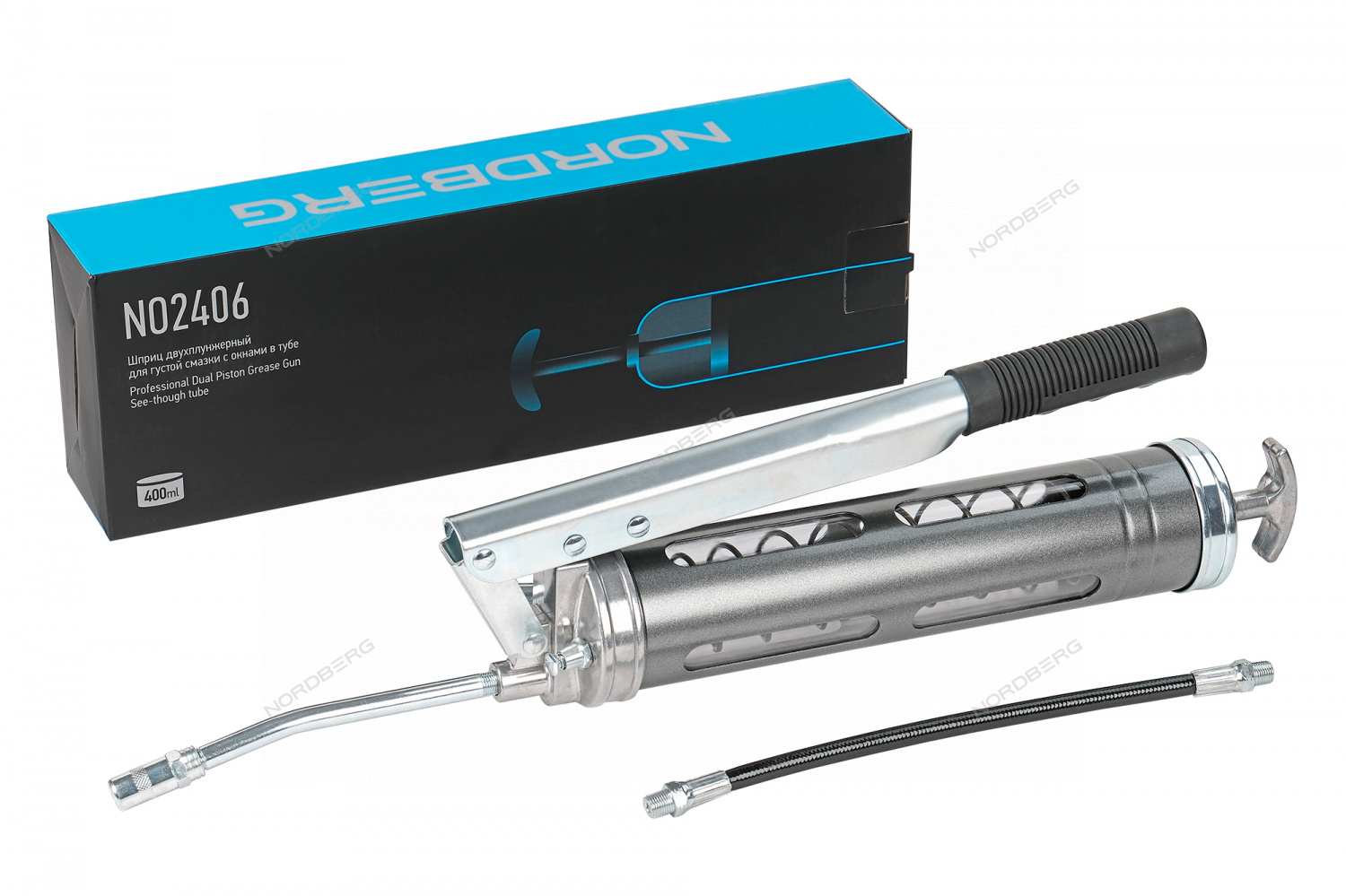 Шприц плунжерный с двумя поршнями NORDBERG NO2406 прекрасно подходит для смазки деталей и механизмов в различных узлах, агрегатах, оборудовании и пр.
