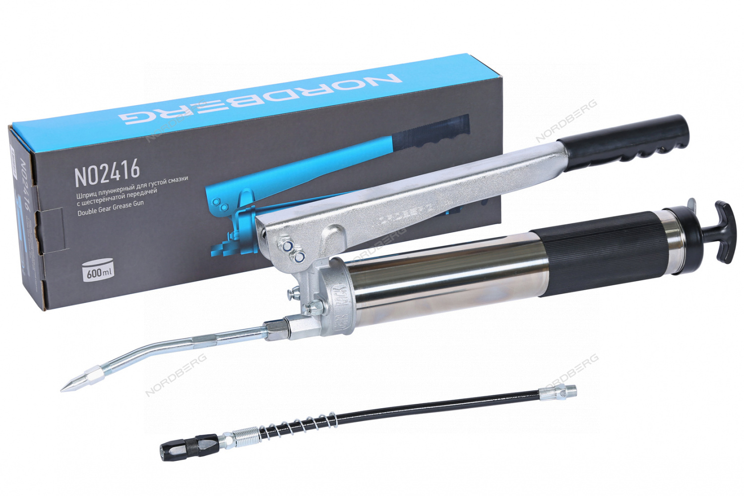 Шприц плунжерный для густой смазки с шестеренчатой передачей, 600 мл NORDBERG NO2416