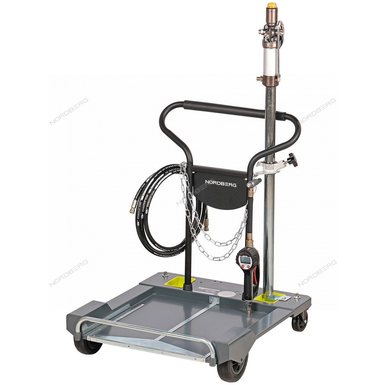 Установка с тележкой для раздачи масла из бочек NORDBERG NO40180T – специализированное оборудование для использования в автосервисах, СТО, ремонтных базах.
