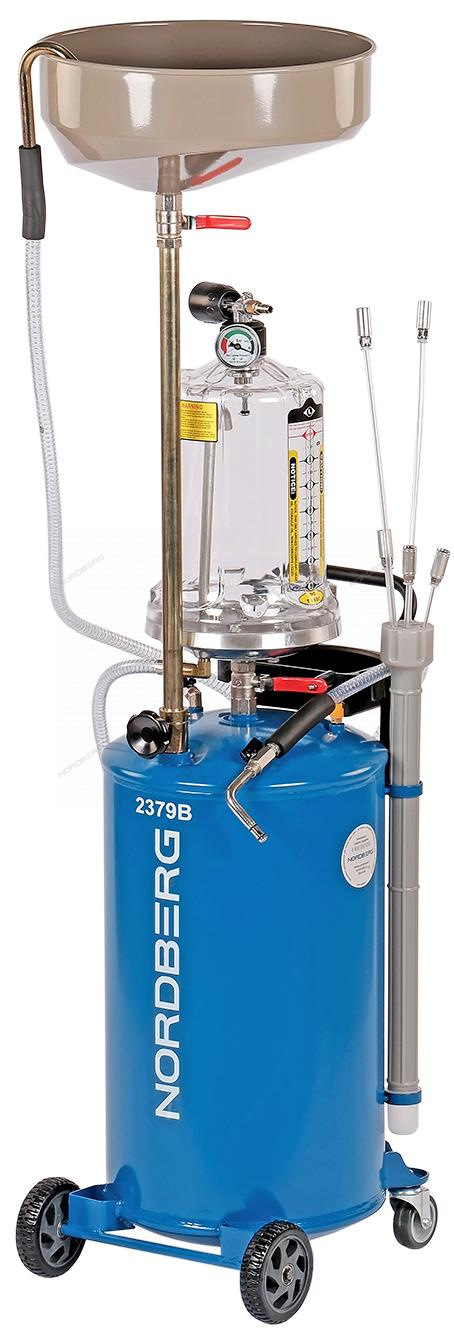 Установка для замены масла NORDBERG (2379) 2379B предназначена для удаления отработанного масла и других жидкостей из любого транспортного средства при помощи вентури-вакуумной вытяжной системы или свободным сливом.