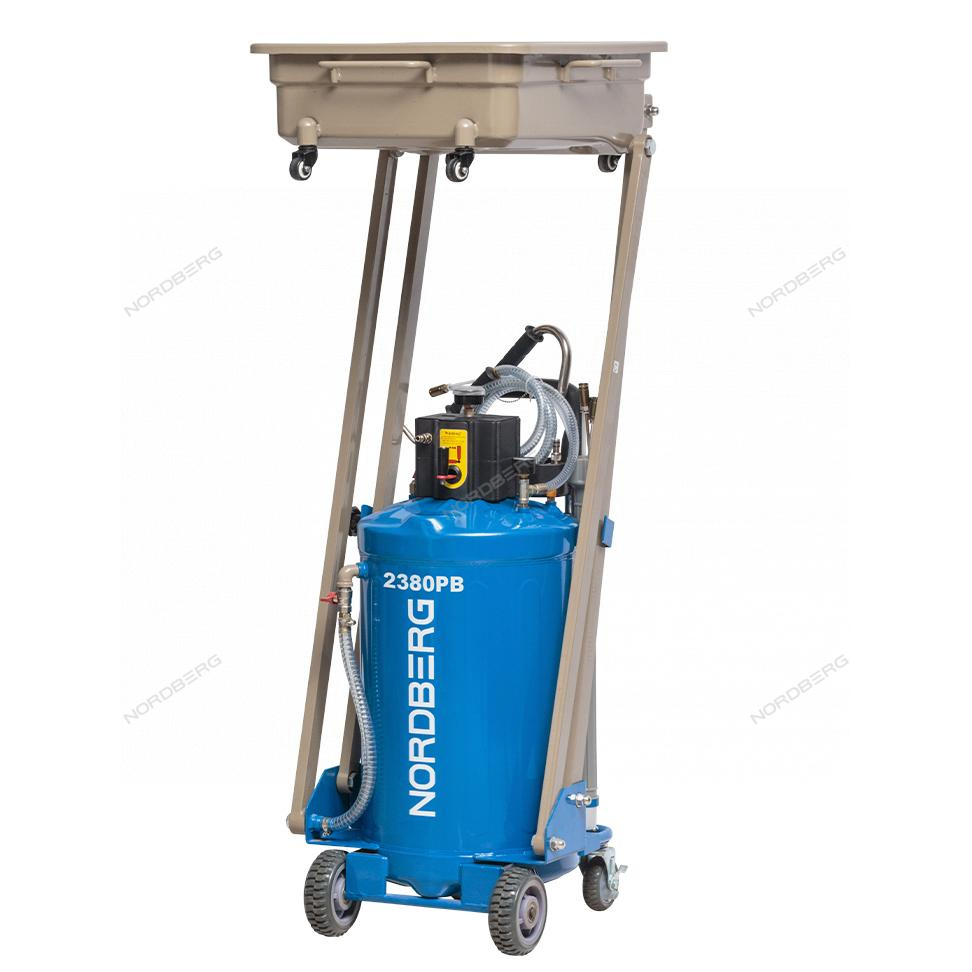 Установка для сбора масла с пантографом NORDBERG 2380PB стальная емкость объемом 80 л, лоток 48 л., на колесах для удобства перемещения в помещении автосервиса, Сбор масла осуществляется путем подключении внешнего компрессора (поставляется отдельно).