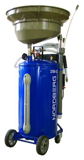 Установка для замены масла NORDBERG 2380-CE удаляет отработанное масло и другие жидкости из любого транспортного средства при помощи вентури-вакуумной вытяжной системы.