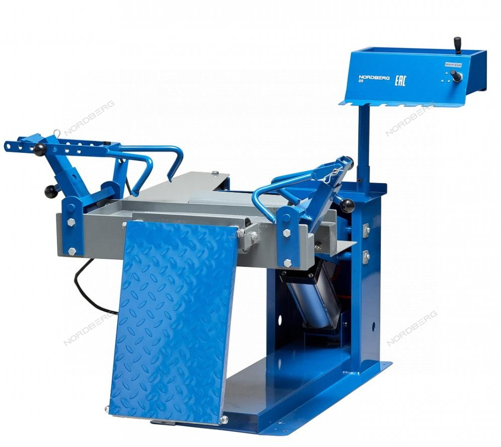 Пневматический борторасширитель NORDBERG D5 для шин грузовых автомобилей с установочным столом и подъемником разработан для фиксации шины, расширения ее бортов и подъема во время ремонта.