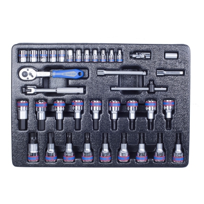 Набор с инструментом торговой марки KING TONY включает в себя торцевые головки и принадлежности, предназначен для монтажа и демонтажа крепёжных узлов различных изделий, устройств и агрегатов.