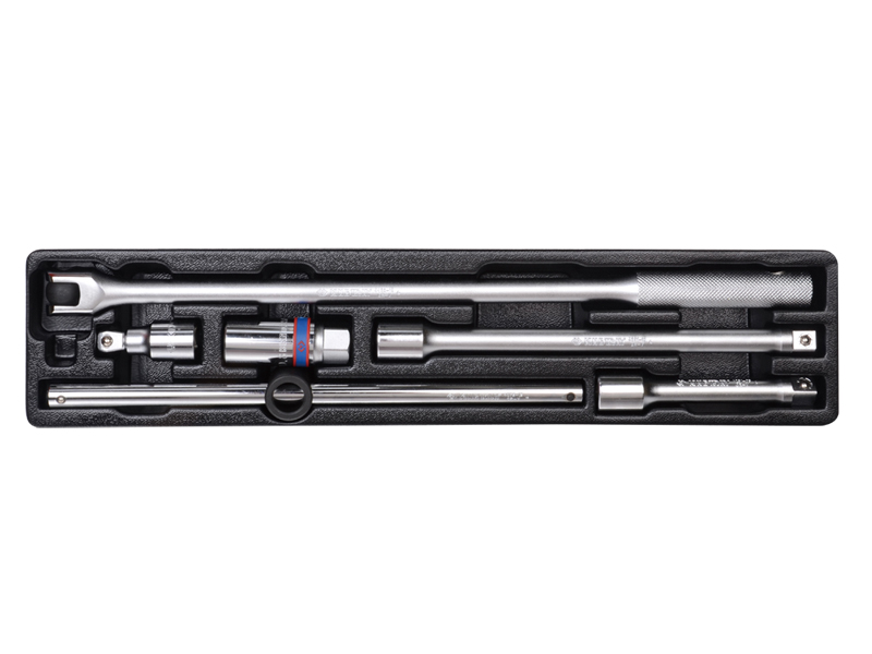 Набор с инструментом торговой марки KING TONY включает в себя принадлежности к торцевым головкам и предназначен для монтажа и демонтажа крепёжных узлов различных изделий, устройств и агрегатов.