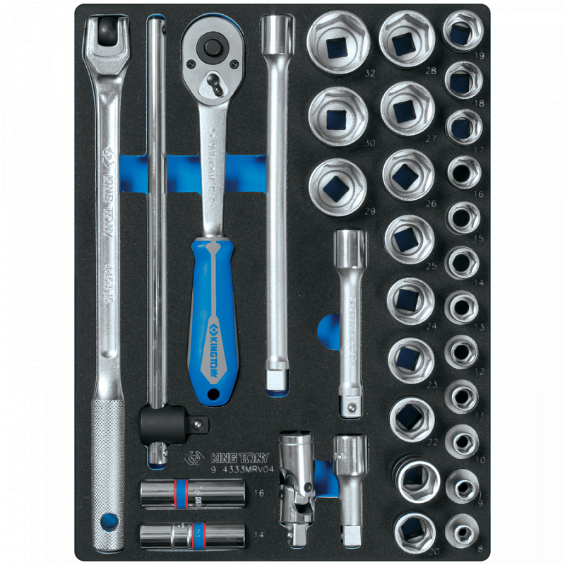 Набор торцевых головок 1/2"" с принадлежностями, шестигранные, ложемент, 33 предмета