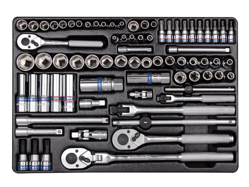 Набор торцевых головок 1/4 и 3/8 с принадлежностями, ложемент, 75 предметов KING TONY 9-5575MR