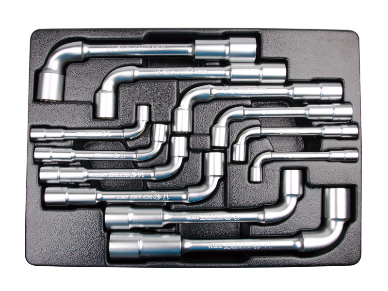 Комплектация данного набора включает в себя торцевые L-образные ключи, предназначены для работы со шпильками, а также с крепежом, находящимся в углублении. Набор отлично подойдет для автослесарной мастерской, станции технического обслуживания или производственного цеха.Ключи выполнены из хром-ванадиевого сплава, что придает прочность и упругость инструменту. Форма ключа позволит работать в местах с ограниченным доступом к крепежу. Ключи расположены в ложементе категории № 4 (375 x 265mm) изготовленным специально для комплектации инструментальной тележки. Материал ложемента – ПВХ В комплект входит: Ключи торцевые L-образные , серии 1080