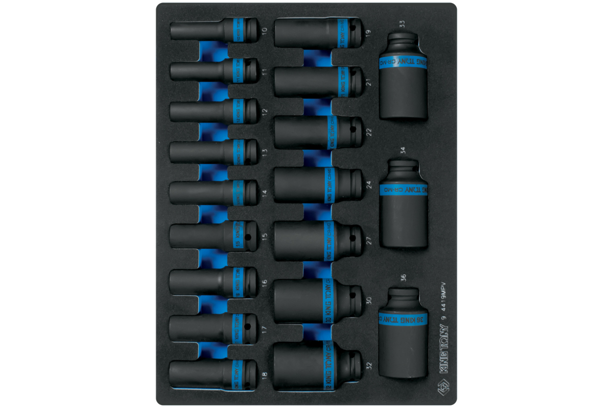 Набор ударных глубоких торцевых головок 1/2"", шестигранные, 10-36 мм, ложемент, 19 предмет