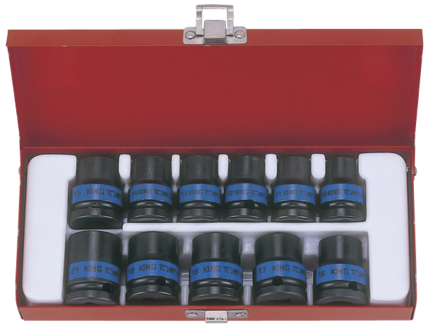 KING TONY Набор ударных торцевых головок 1/2", шестигранные, 10-21 мм, 11 предметов