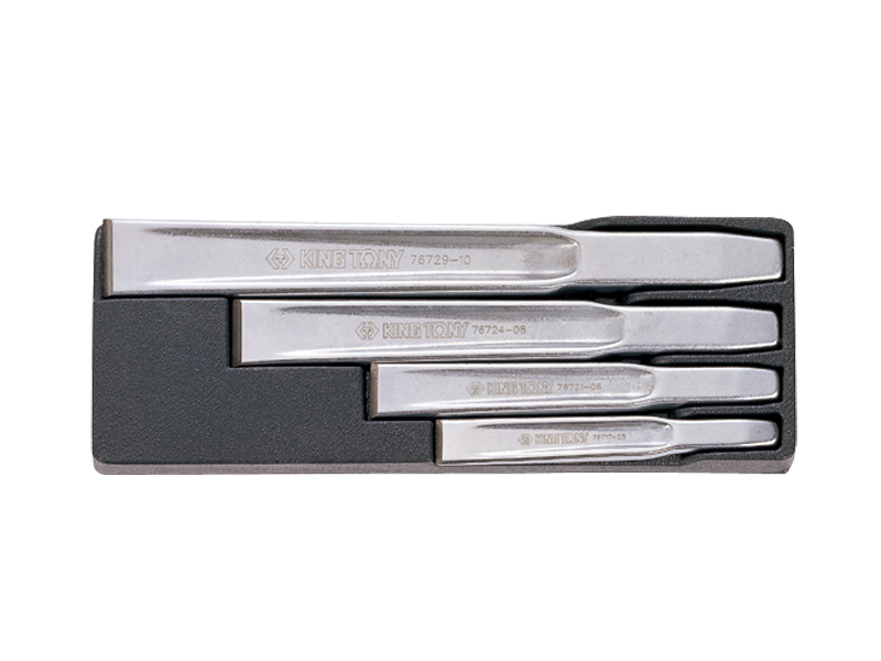 Набор зубил в ложементе KING TONY усиленные 4 предмета 11104PR10 предназначен для создания в заготовках пазов и канавок. Подходит для использования как в столярной, так и в слесарной работе.Зубила выполнены из хром-ванадиевой стали которая прошла процесс закалки, что придает инструменту прочность и упругость. Зубила расположены в ложементе для удобного хранения. В комплект входит: