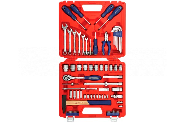 Хромированное покрытие защищает инструменты от коррозии, специальная насечка на ободке головок, рукоятках воротков и других силовых инструментов исключает проскальзывание руки при работе, рукоятки отвёрток и шарнирно-губцевого инструмента выполнены из двухкомпонентного бензо- и маслостойкого материала.