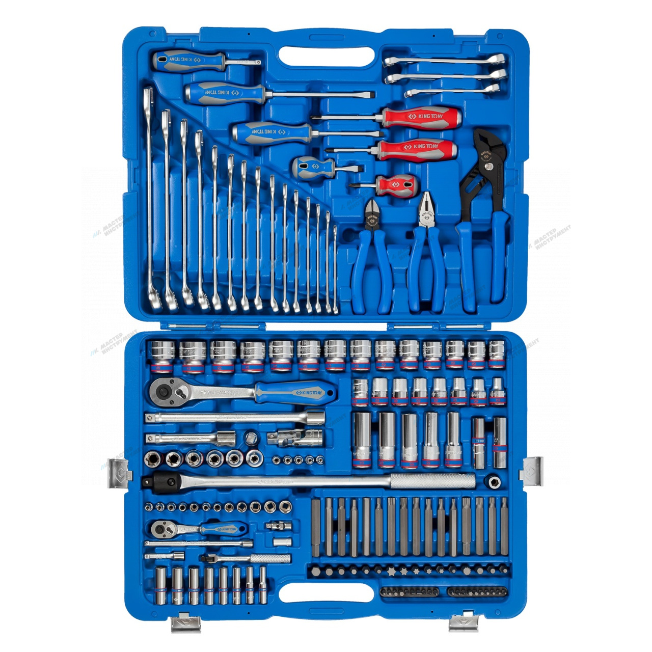 Самая полная и универсальная комплектация, набор для настоящего профессионала. Головки формата 1/4" и 1/2" с 6-гранным профилем – как короткие, так и глубокие, головки Е-стандарта, ключи комбинированные и разрезные, отвертки, в том числе силовые, шарнирно-губцевый инструмент, вставки (биты) разного профиля и форматов. Кроме максимальной комплектации, набор примечателен мощным силовым воротком, который позволит справиться с любым проблемным крепежом.