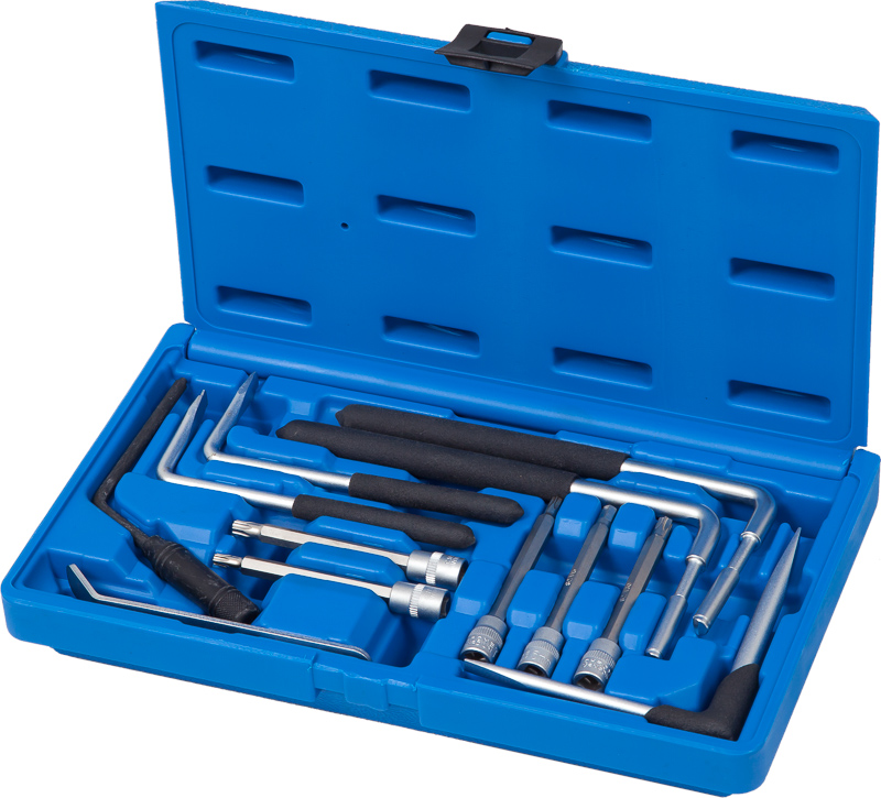 С помощью набора МАСТАК 108-20012C можно легко обходиться без подручных средств по работе с водительской подушкой безопасности. В данный набор инструментов входят необходимые элементы, использующиеся для снятия и установки элемента.Инструмент расположен в пластиковом кейсе для комфортного хранения и транспортировки. В комплект входит:Головки торцевые 1/4" с запресованными вставками 87 мм: T25 (BMW). T30 (AUDI, WV, OPEL, RENAULT). T25 с отверстием (BMW). T30 с отверстием (AUDI, OPEL). H5 (AUDI). Съемники угловые: VW (PASSAT B5, POLO, LUPO). AUDI (A4, A6), SKODA (SUPER B). VW (PASSAT, PASSAT AB BJ 2000, JETTA, GOLF BEETLE). VW (PASSAT, JETTA, GOLF BEETLE).