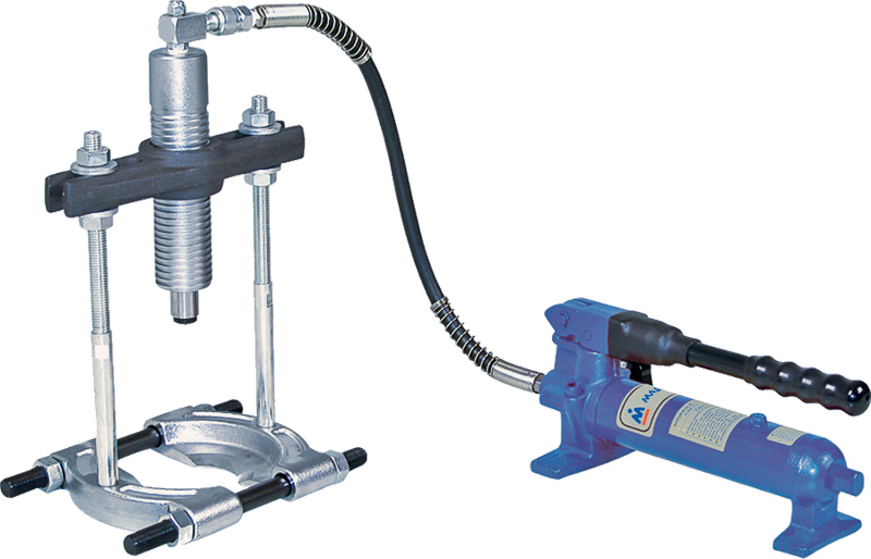 Съёмник подшипников гидравлический МАСТАК 104-19408 предназначен для демонтажа подшипников, шестерен, шкивов и т.п., где применение съёмников с захватом лапами невозможно.Съёмник приводится в действие насосом (751-00600) с объёмом рабочего масла 600 см3Хромированный гидравлический цилиндр прошёл термическую обработку. Центральный болт и лапки выполнены из стали горячей ковки с марганцовофасфатным покрытием для предотвращения коррозии и продления срока службы.