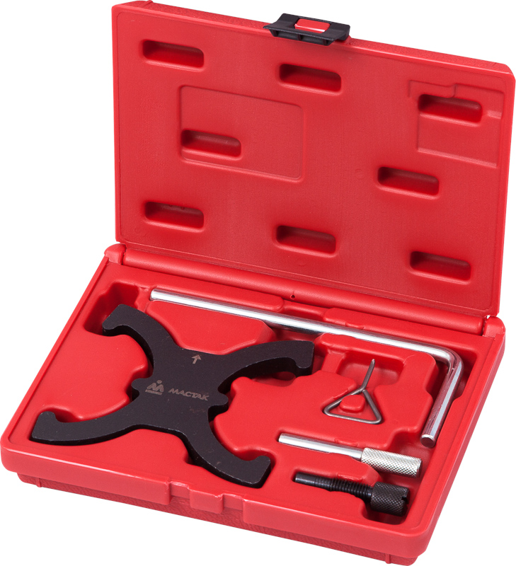 Набор инструментов МАСТАК 103-21403C специально разработан для автомобилей FORD для двигателя модификации HXDA. С помощью данного набора можно без проблем выставить фазы ГРМ, избегая повторных разборок и регулировки.