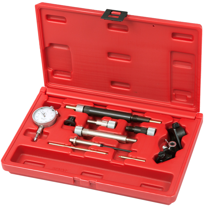 Приспособление для регулировки ТНВД 10 предметов МАСТАК 103-50010C предназначен для установки угла опережения впрыска топлива двигателей легковых и легких коммерческих автомобилей с ТНВД Bosch VE Rotary, Kiki, Nippon Denso, CAV Rotodiesel.Инструмент расположен в пластиковом кейсе для комфортного хранения и транспортировки. В комплект входит: