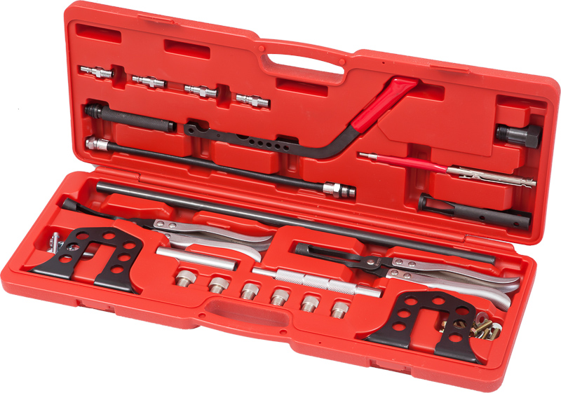 Универсальный рассухариватель клапанов МАСТАК 103-10019C поставляется с комплектом дополнительных приспособлений, которые позволяют применять его для двигателей большинства мировых марок автомобилей.Комплект расположен в пластиковом кейсе для комфортного хранения и транспортировки.