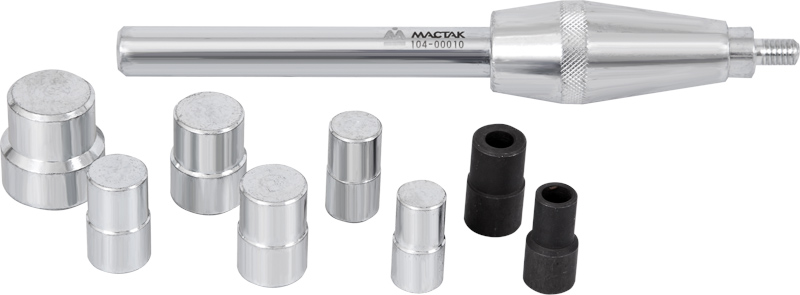 Набор оправок для установки сцепления, 10 предметов МАСТАК 104-00010 прост в использовании, поэтому с его эксплуатацией справится не только опытный, но и начинающий автомеханик. Большой комплект поставки делает данный набор подходящим для большинства марок автомобилей.Метрические и дюймовые размеры. Высокоточно обработанные оправки позволяют быстро и точно выравнивать диск сцепления по отношению к маховику. В комплекте держатель оправки 1 шт. и оправки алюминиевые 9 шт