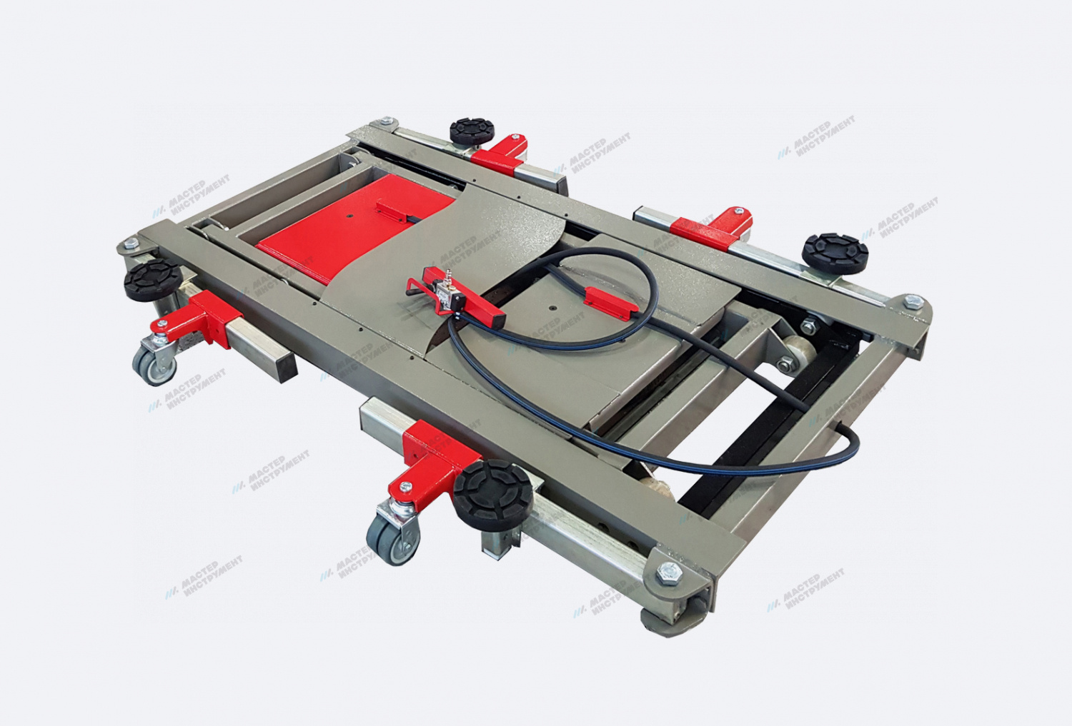 Подкатной пневмоподъемник ножничного типа, за счет своих габаритов и мобильности ,позволяет поднимать автомобили в небольших помещениях с низкими потолками, и даже на улице. За счет поднятия всего автомобиля на высоту до 65 см.