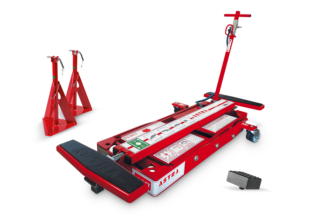 Ножничный пневматический напольный подъемник, грузоподъемность 2,5 тонн может практически полностью заменить собой двухстоечный подъёмник. Достаточно лишь подключить к нему воздушный шланг от обычного компрессора с давлением от 6 до 8 бар. С помощью специальных колес, которые устанавливаются на подъёмник, вы сможете перемещать автомобиль по ремонтной зоне без посторонней помощи. Так что если вам срочно надо освободить выезд для отремонтированного автомобиля, а в это время на Astra стоит другой полуразобранный автомобиль, никакой проблемы нет. Вы просто устанавливаете колеса и откатываете свой автомобиль в сторону.