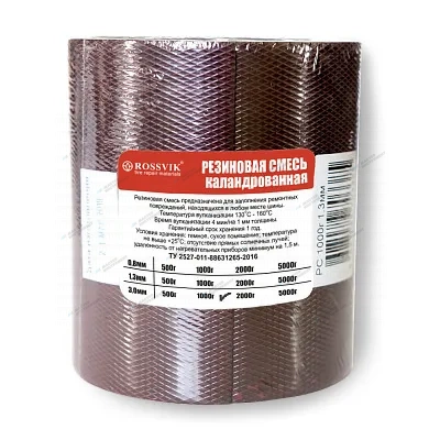 Резиновая смесь (каландрованная) предназначена для ремонта камер и шин “горячим” способом. Универсальные свойства резины позволяют использовать ее как при ремонте твердой протекторной, так и эластичной боковой зоны шины.Высокая пластичность резиновой смеси позволяет применять ее для косметического ремонта наружной поверхности шины.Время вулканизации:4 минуты на 1 мм толщины резиновой смеси на прогретом вулканизаторе (130-160°С) под давлением 2-2,8 атм.
