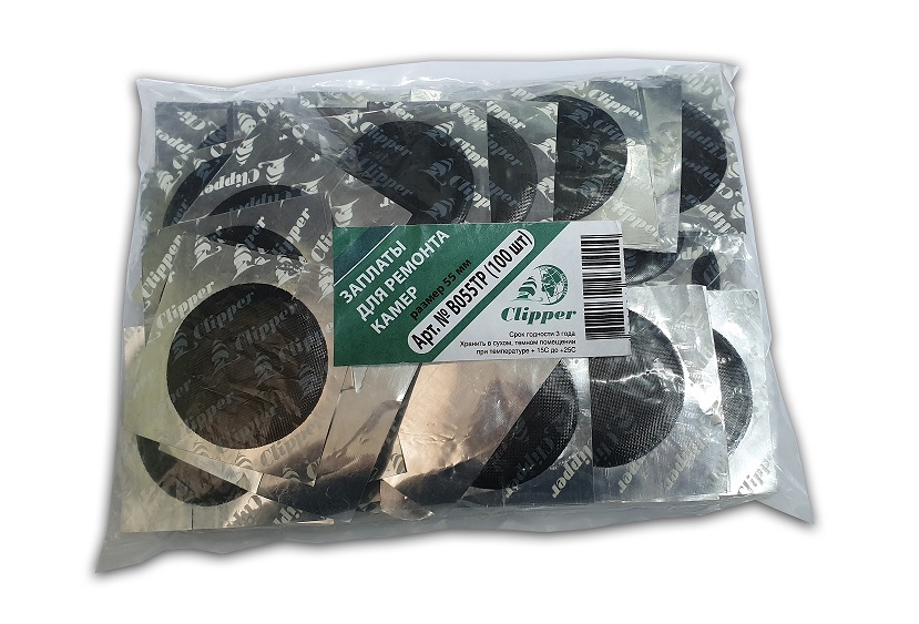 CLIPPER НАБОР ЗАПЛАТ B055TP для ремонта камер на фольге в пакетах 55мм (100шт)