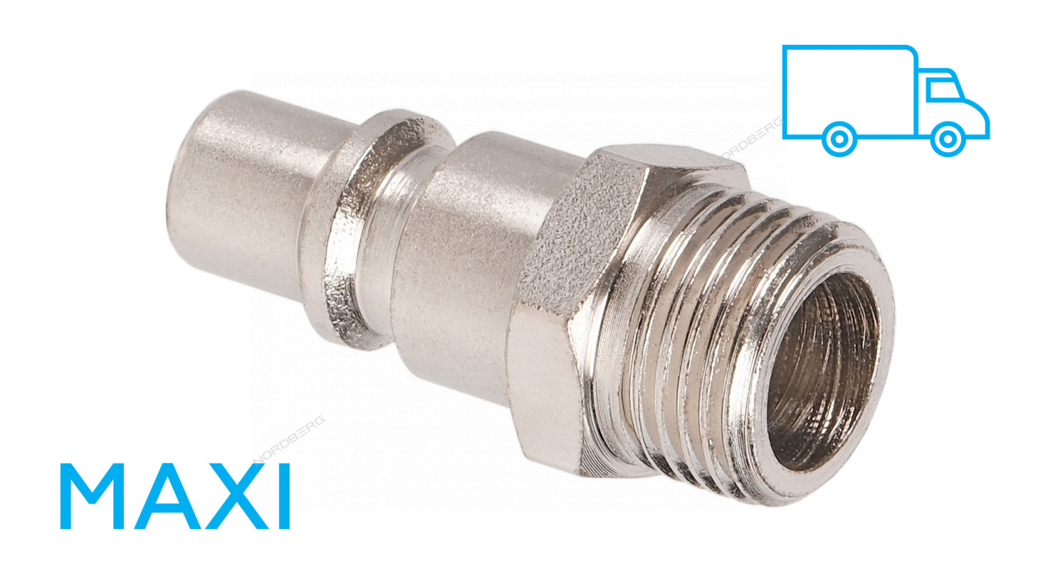 Переходник МАКСИ NORDBERG NPM24M быстросъемный "папа" - резьба M1/2" предназначен для соединения элементов пневмолинии и пневматического инструмента, там, где требуется частая и быстрая замена пневмоинструмента.