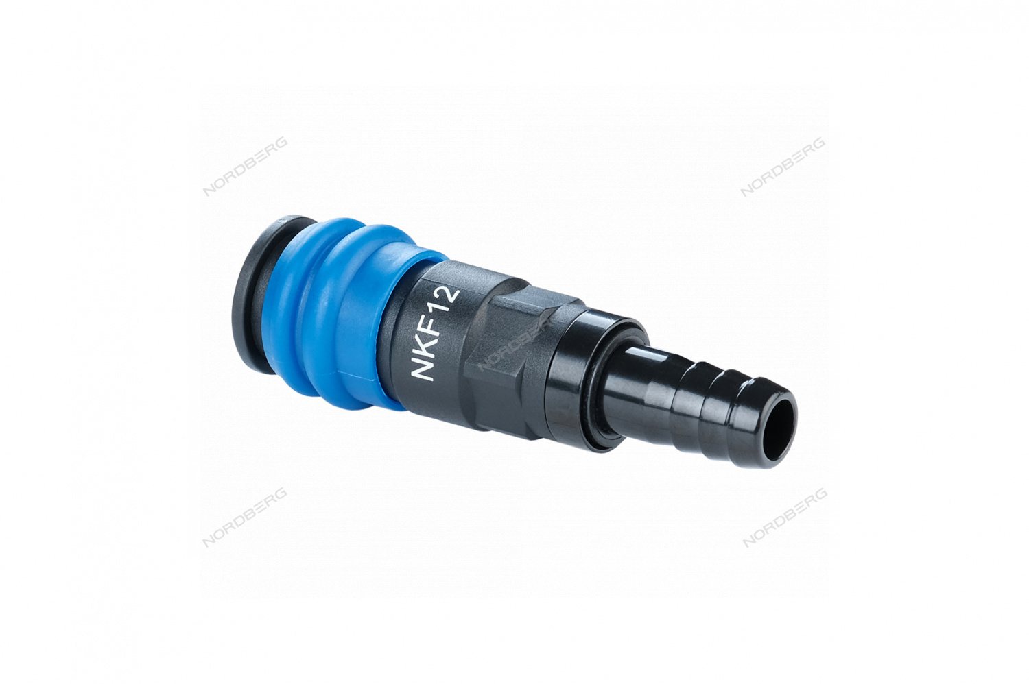 Разъем композитный NORDBERG NKF12 быстросъемный "мама" - елочка D 12,5 мм предназначен для соединения элементов пневмолинии и пневматического инструмента, там, где требуется частая и быстрая замена пневмоинструмента.