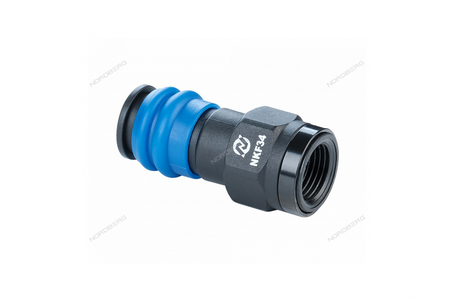 Разъем композитный NORDBERG NKF34 быстросъемный "мама" - резьба F1/2" предназначен для соединения элементов пневмолинии и пневматического инструмента, там, где требуется частая и быстрая замена пневмоинструмента.