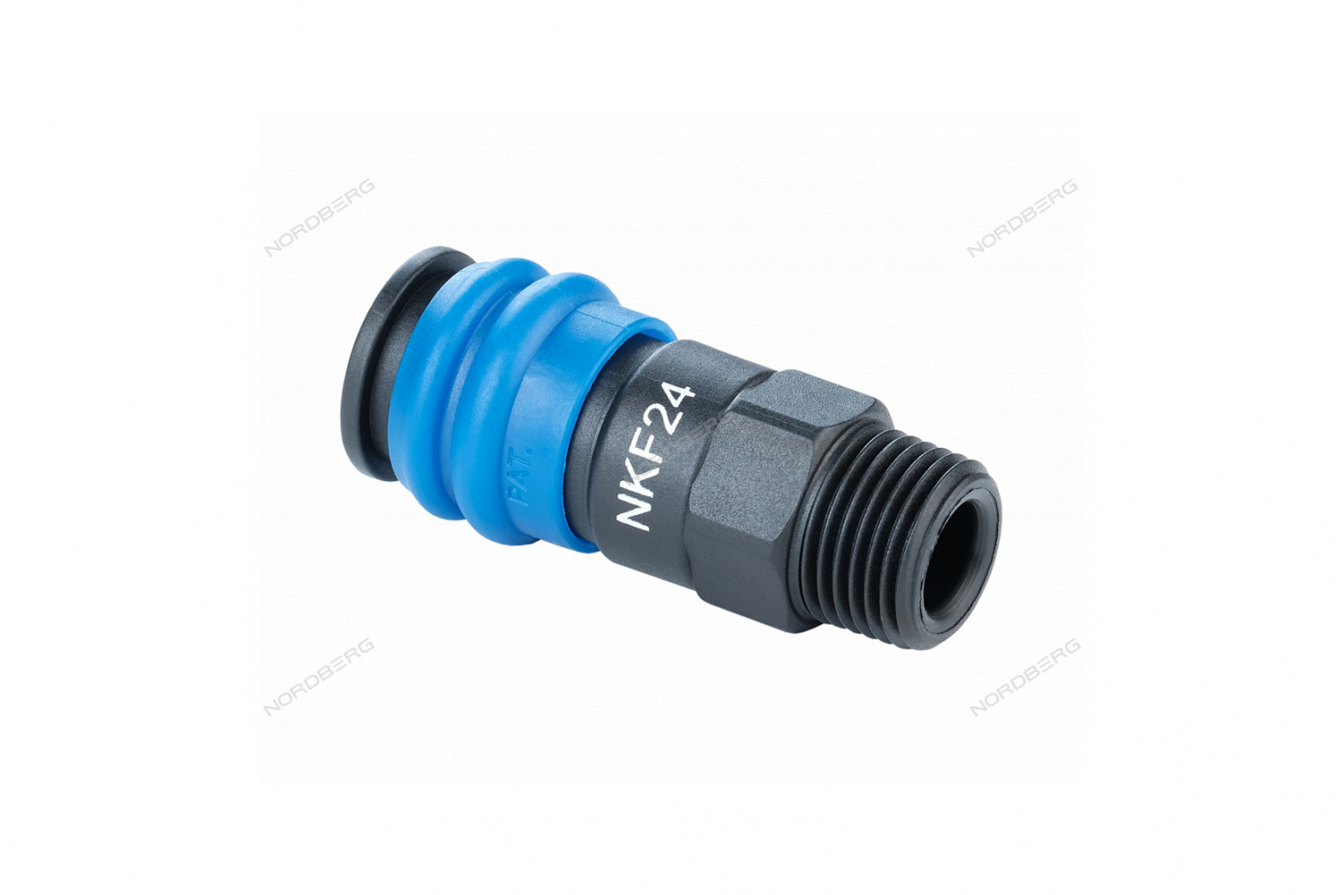 Разъем композитный NORDBERG NKF24 быстросъемный "мама" - резьба M1/2" предназначен для соединения элементов пневмолинии и пневматического инструмента, там, где требуется частая и быстрая замена пневмоинструмента.